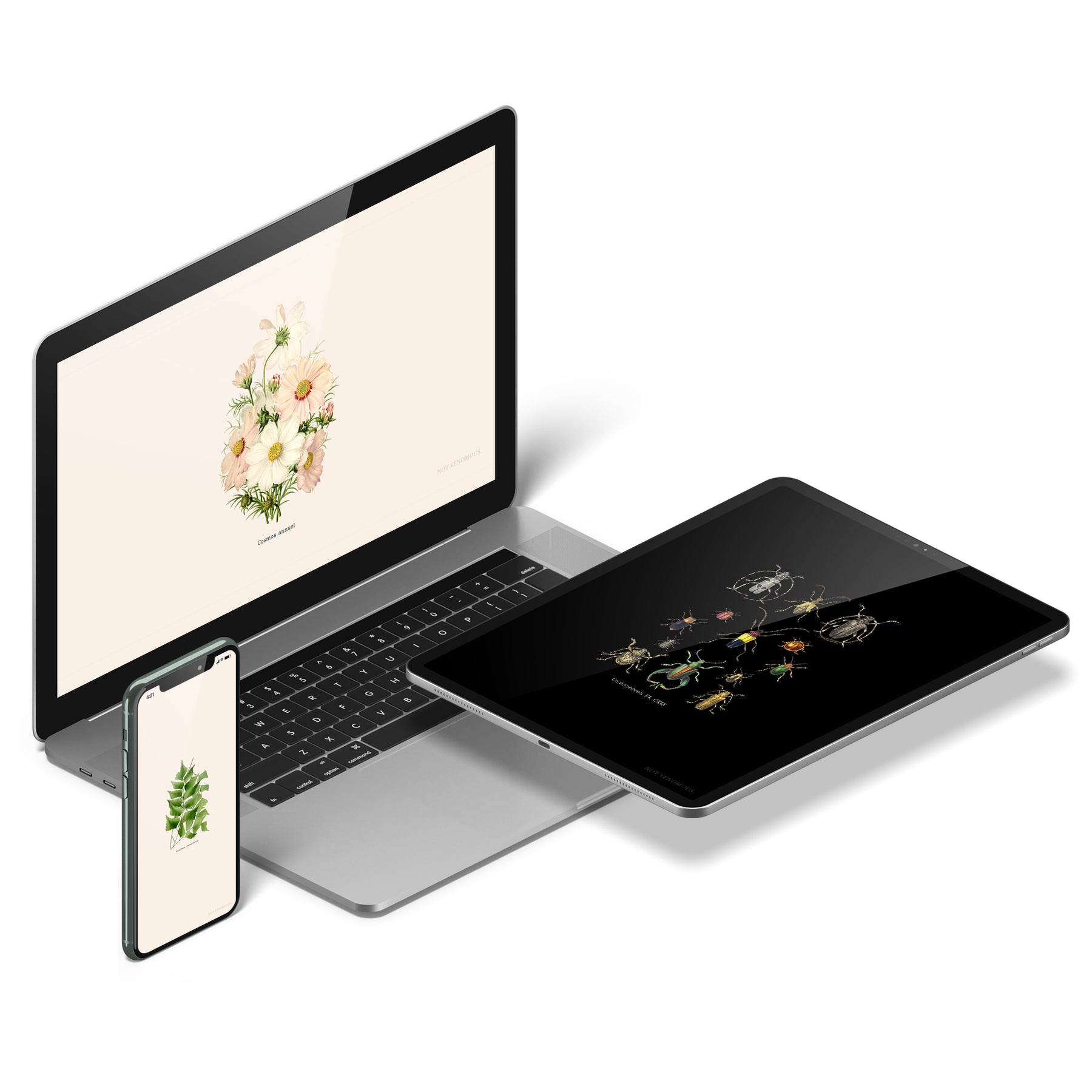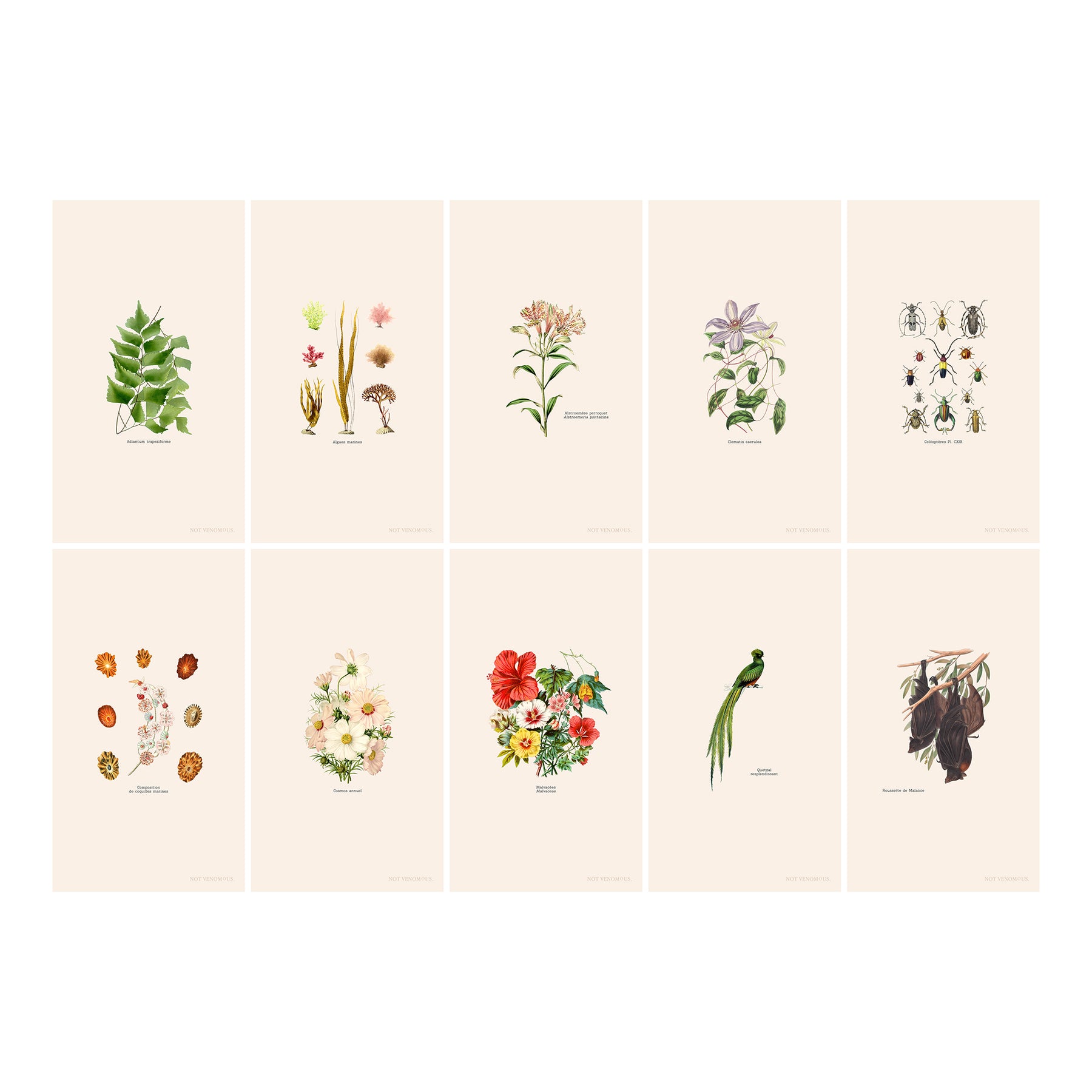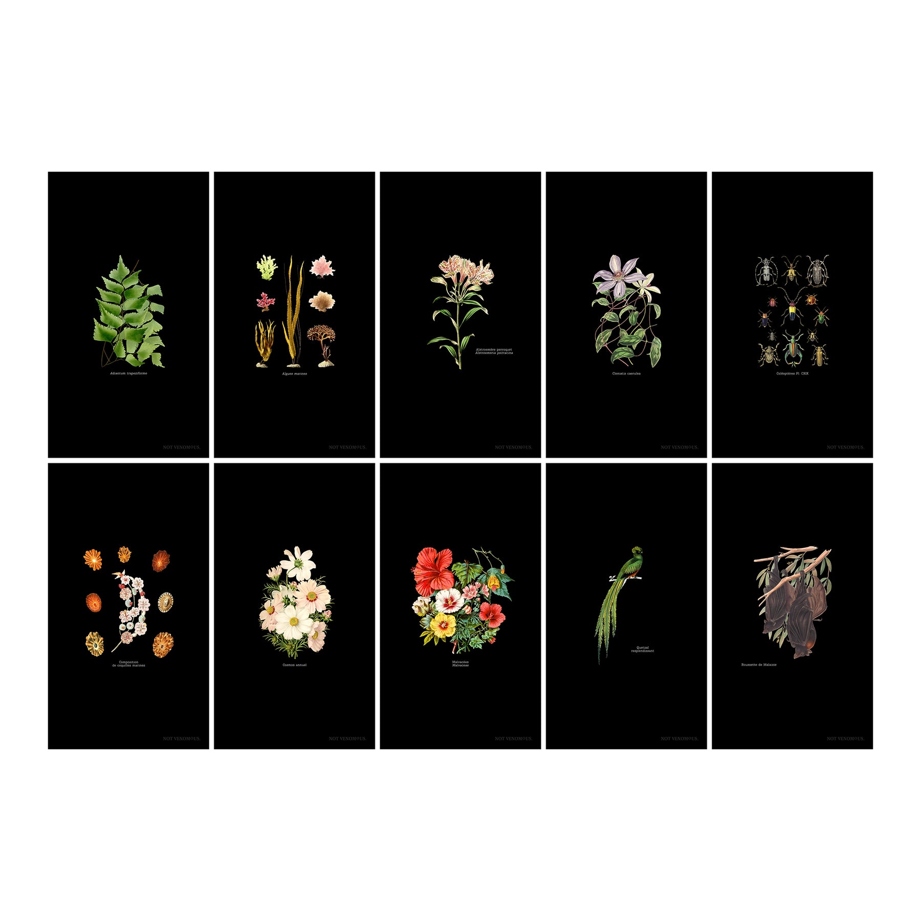 Retrouvez ses 10 illustrations en fonds d'écran, pour trois supports (téléphone, ordinateur et tablette), déclinées chacune sur fond lin et sur fond noir. De quoi habiller vos appareils pour longtemps et les changer au gré de vos envies, des saisons ou de vos espèces favorites.
