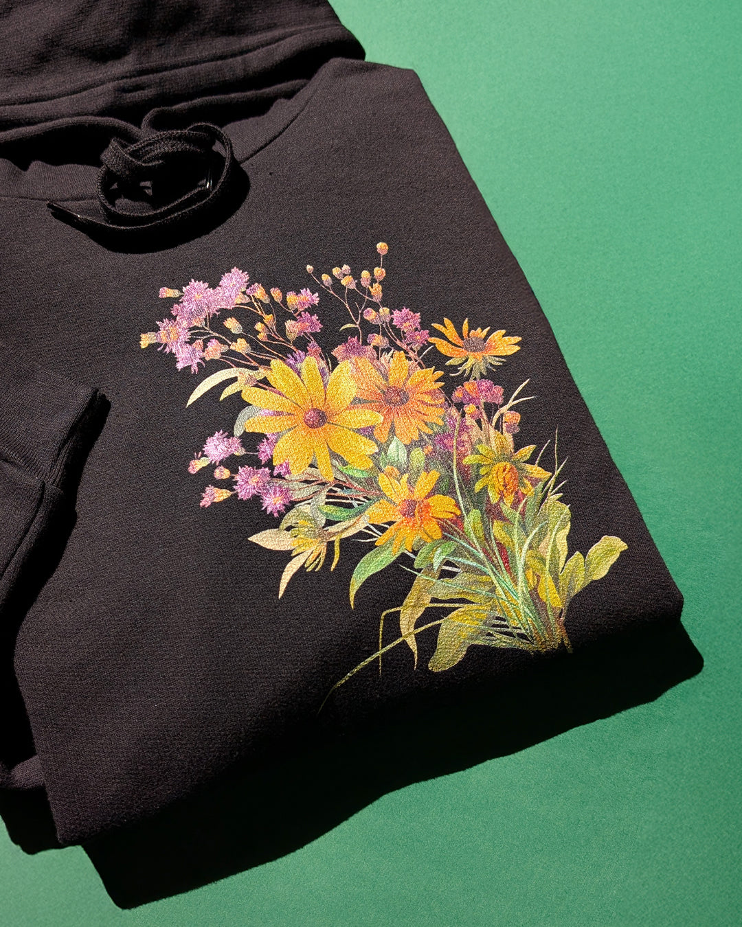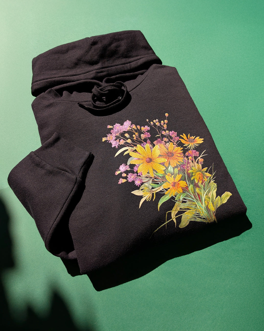 Une fois imprimées sur les textiles, les illustrations peuvent avoir du grain. Cela est tout à fait normal : les encres s'imprègnent dans les tissus (c'est ainsi qu'elles durent plus longtemps) et épousent le maillage de ceux-ci.