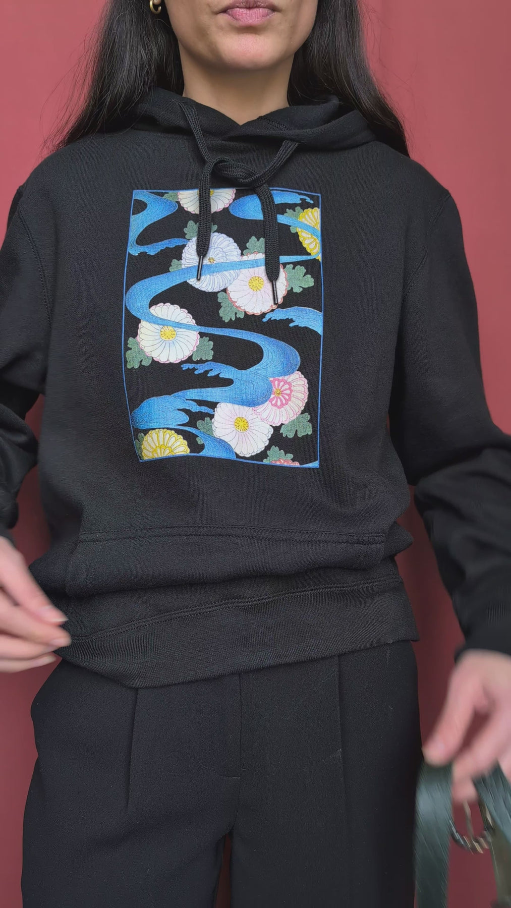 Vidéo : Hoodie porté en coloris noir, taille S, sur une taille femme habituelle S.