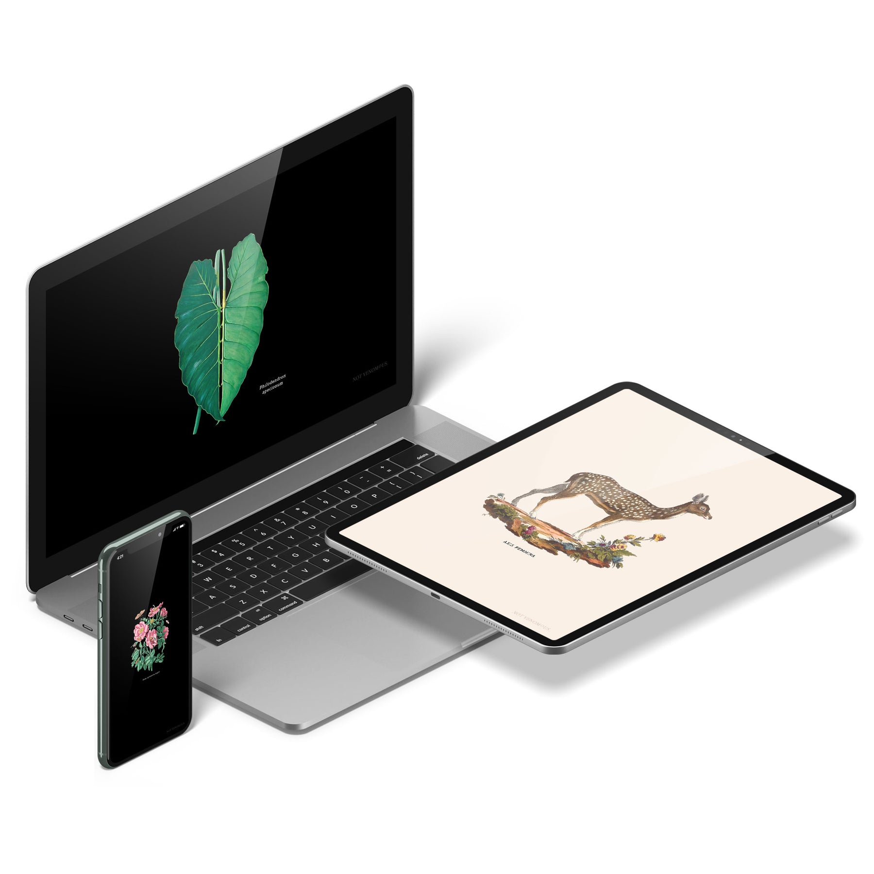 Retrouvez ses 10 illustrations en fonds d'écran, pour trois supports (téléphone, ordinateur et tablette), déclinées chacune sur fond lin et sur fond noir. De quoi habiller vos appareils pour longtemps et les changer au gré de vos envies, des saisons ou de vos espèces favorites.